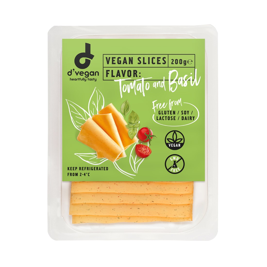 Vegan Tomato & Basil cheese flavor has a classic Mediterranean sweetness and aroma. Is free from dairy, gluten, GMO, soy, lactose. It is based on Coconut oil and is fortified with Vitamin B12.